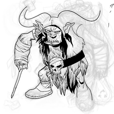 Sketch shows early idea of having all the creatures build from illustration to illustration -- ultimately deemed that too children's booky for this project.